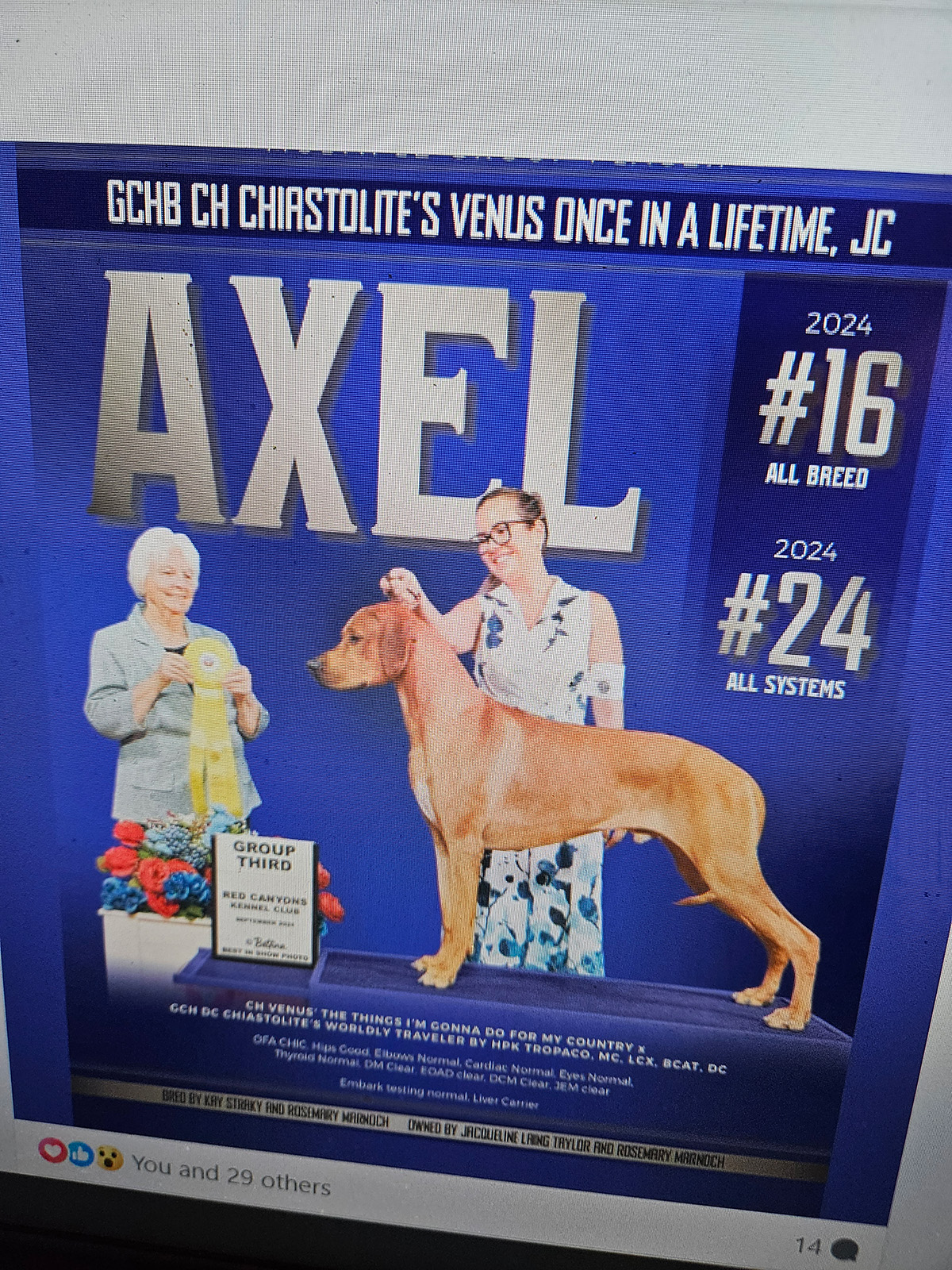 - Both sire and dam must have OFA clearances on hips and elbows. This should be verified www.offa.org; and