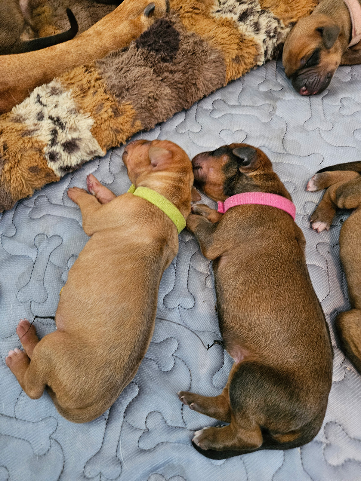 After that, there's the three weeks of no-sleep, super-superheated nights (to avoid canine herpes, the puppies have to be kept warm since their own "thermostat" and fever response don't kick in for about two and one-half weeks). You'll be right beside the whelping box to ensure mom doesn't accidentally roll over or step on her new puppies. Every movement, every squeak requires attention.
